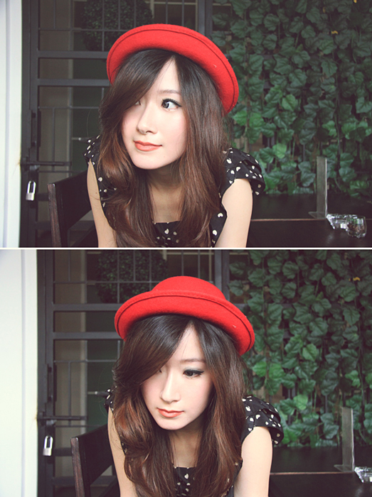i think the makeup is too thick. so it looks really mature, i think thin makeup like the photos on the blog it's more suitable to you, look fresh, look younger and look verryyy sweett...