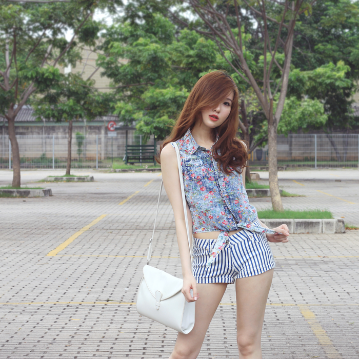 Stunning and so adorable!!! I am so in love with your floral denim vest/top and how you paired it so beautifully with those striped shorts :) I am so in love with your white bag <3
