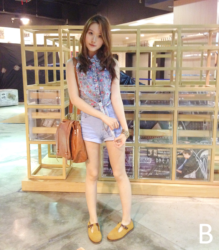 Floral Denim Top, High Waisted Denim Shorts, Square Backpack Brown — all GOWIGASA [http://www. gowigasa.com]