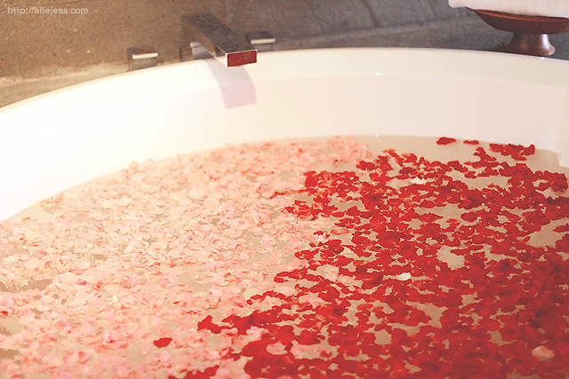 The spa began with us taking off our clothes, wearing only provided disposable underwear instead. After lying down, our backs were covered with a sheet. The masseuses rang a bell and thus begin our treatment. First step was body scrub, followed with towel cleansing and feet-body-head massage. Our masseuses were experienced and the massage was great. Unfortunately, it was too fast to us (we're used to 5-6 hours spa packages whenever we're in Bali). After the massage is over, the masseuses left the room so we can take a bath or a shower.