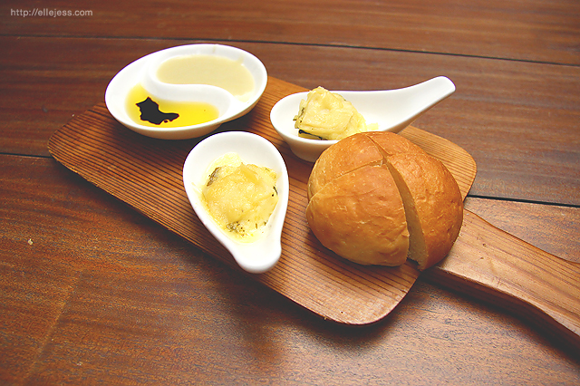 White dinner roll, extra virgin olive oil, balsamic vinegar, cauliflower cream and vegetarian lasagna. Portabella serves different creations of amuse bouche everyday. It's a complimentary and not listed in the menu. We love the vegetarian lasagna - the ones on the spoon so much!